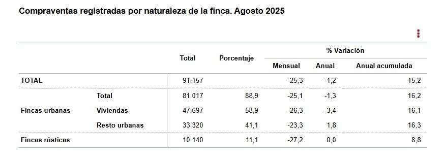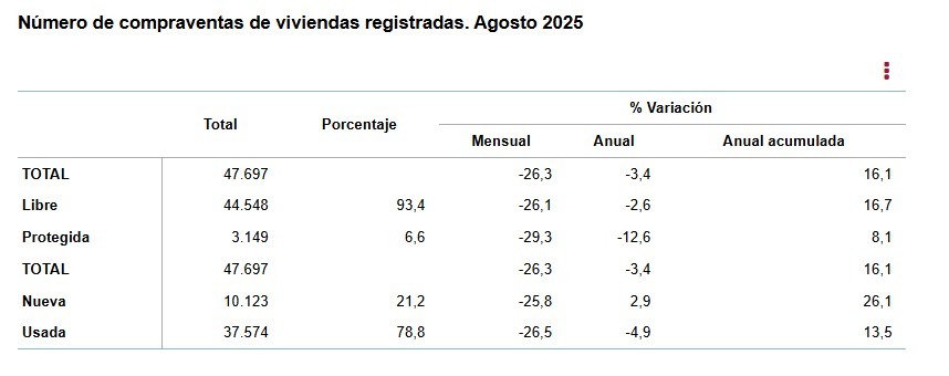 El INE ha publicado sus últimas estadísticas sobre compraventa de viviendas en agosto 2025: